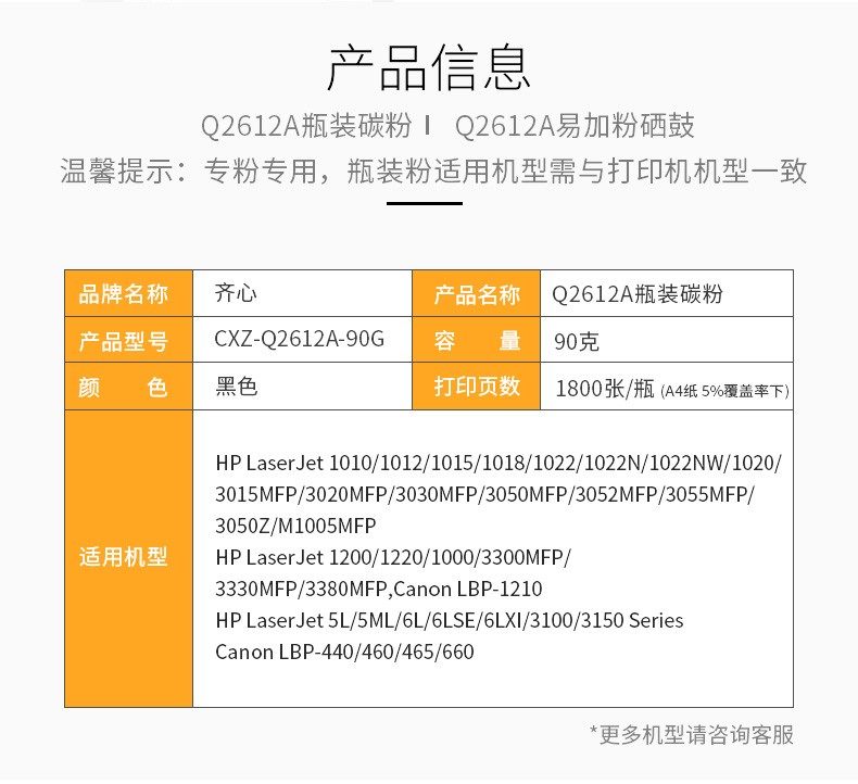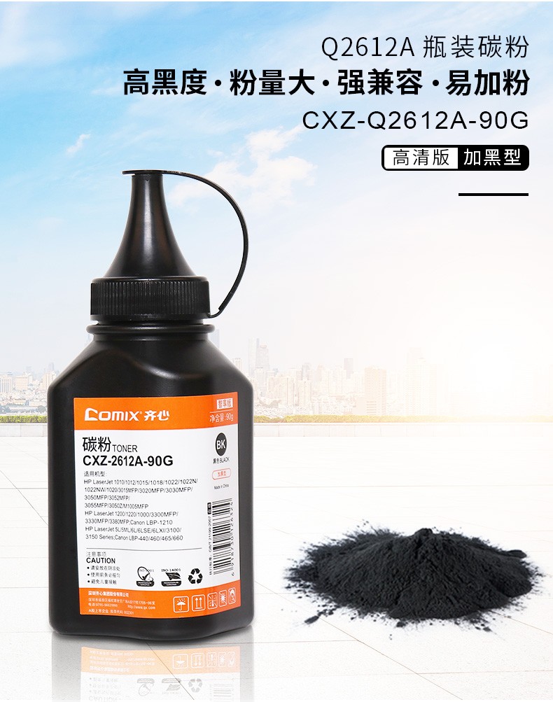齐心(COMIX) Q2612A碳粉适用惠普12A碳粉HP1020 1005墨粉HP1010 1020plus 1018 12a Q2612A通用m1005 mfp激光打印机碳粉