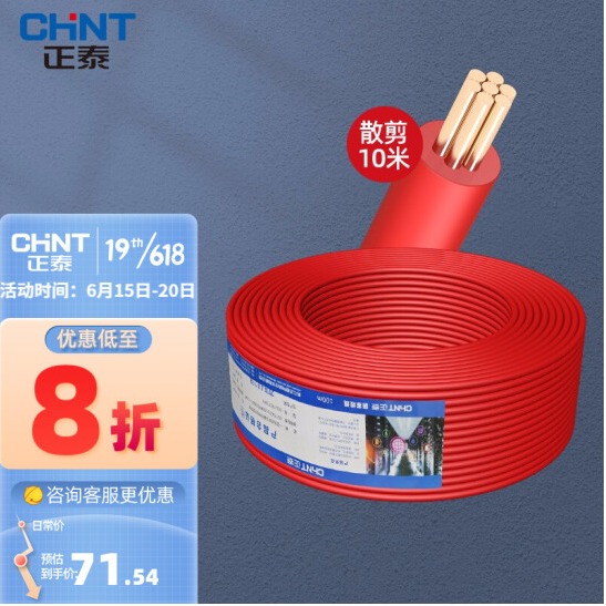 正泰(CHNT) 电线电缆BVR6平方多股软线家装线缆多芯铜线散剪10米【散剪不支持退换】 红色(软线)