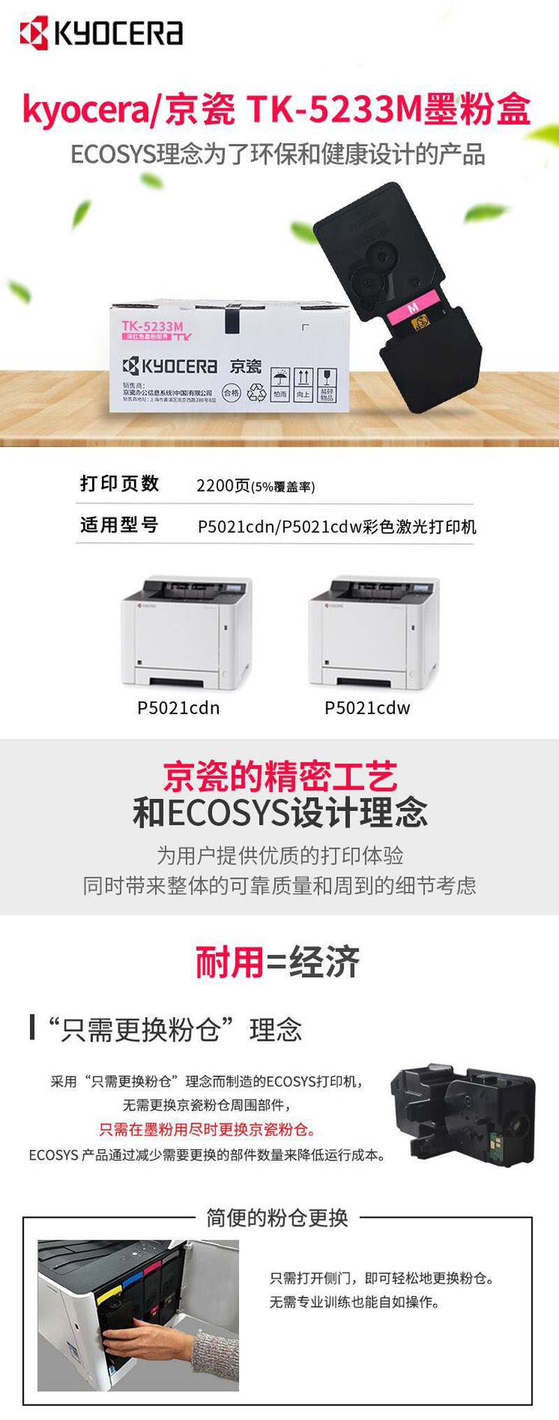 京瓷(KYOCERA) TK-5223C 青色(蓝色)墨粉/墨盒 P5021cdn/P5021cdw墨粉盒粉仓碳粉墨粉单支