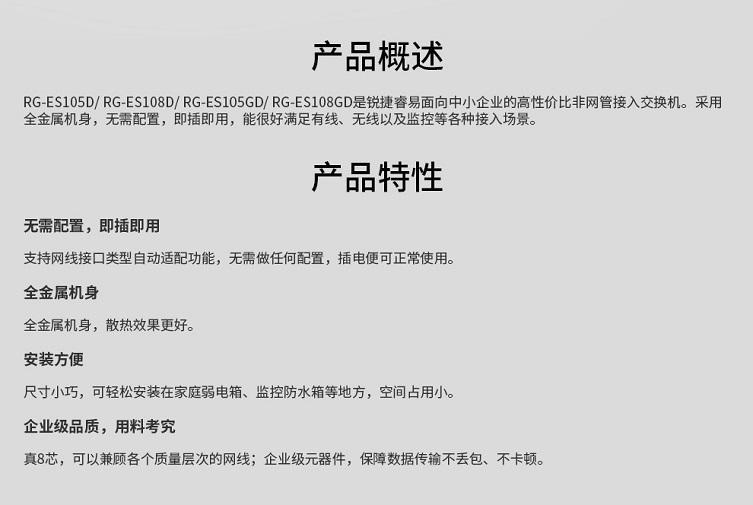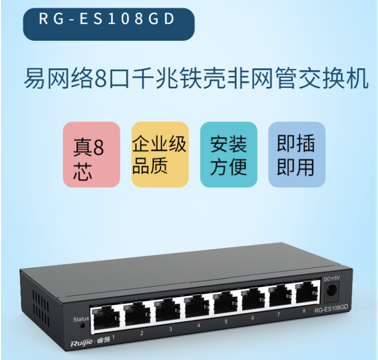 锐捷(RUIJIE) RG-ES108GD 8口千兆交换机 铁壳非网管企业级交换器