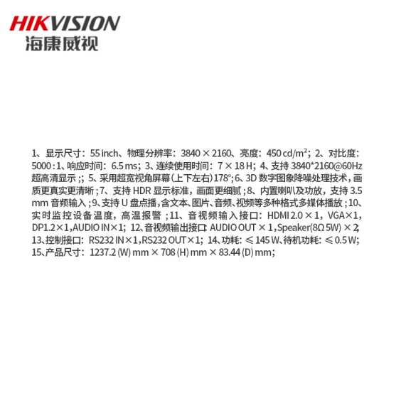 海康威视(HIKVISION) DS-D50UK55 55寸观摩屏