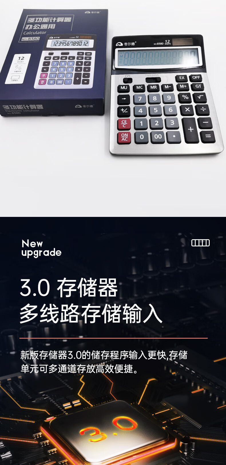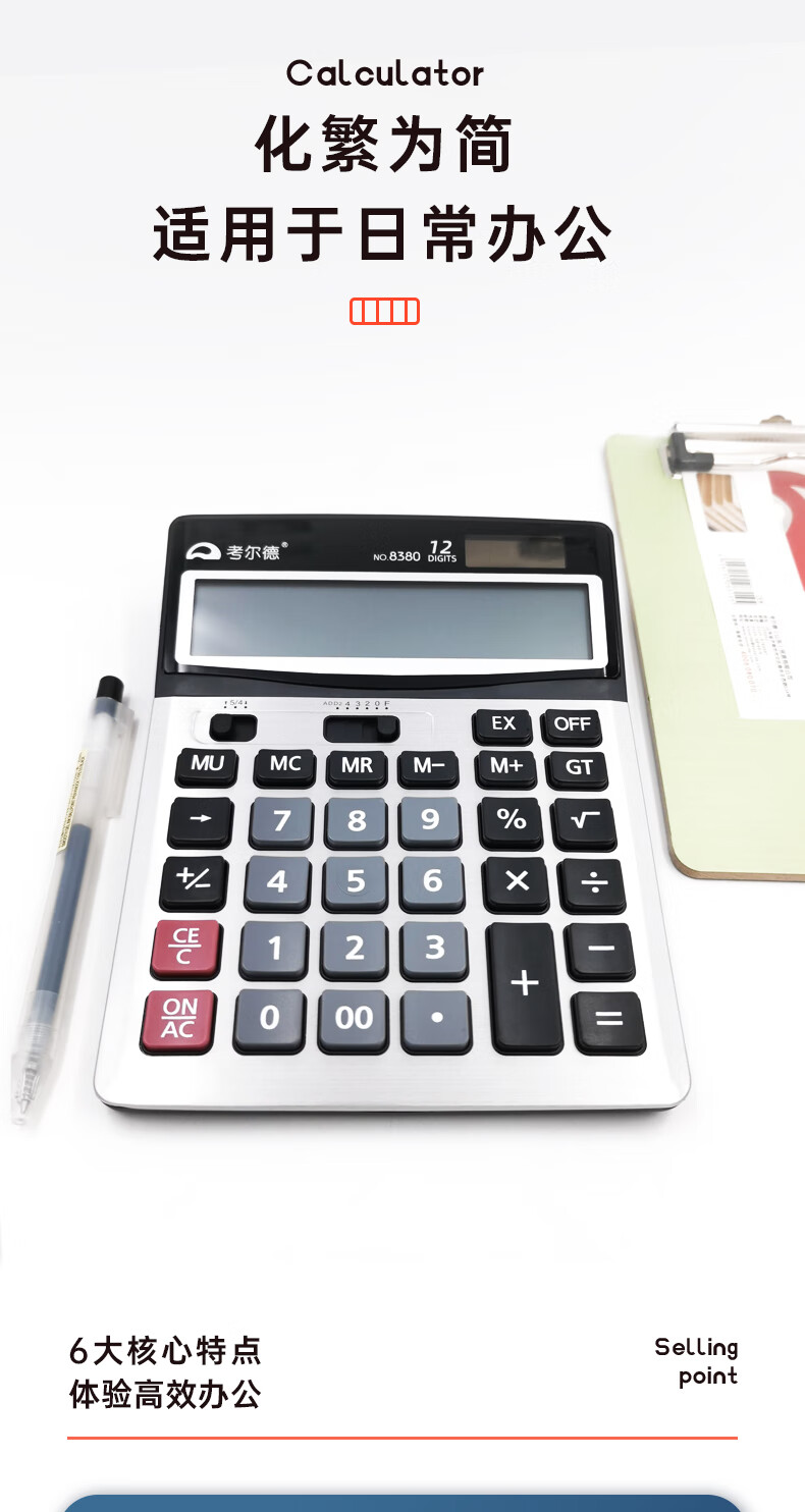 考尔德 8380 双电源宽屏办公桌面计算器 财务计算机