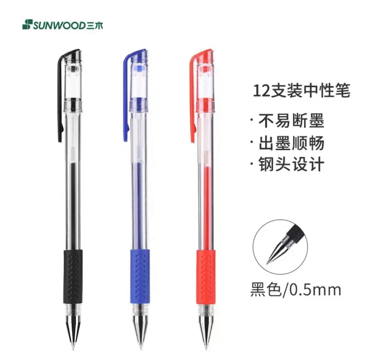 三木(SUNWOOD) 效率王系列0.5mm黑色经典子弹头中性笔/签字笔/水笔12支/盒P9