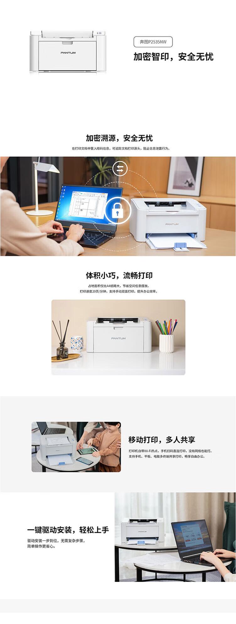 奔图(PANTUM) P2535NW 黑白激光打印机 无线网络