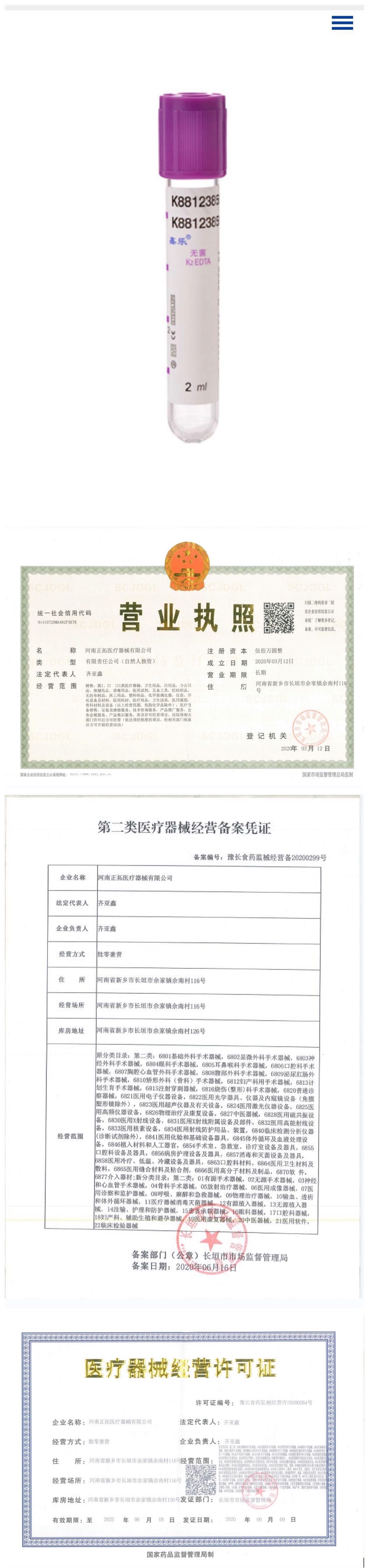 1、EDTA抗凝剂,用于血细胞计数分类、血型测定。