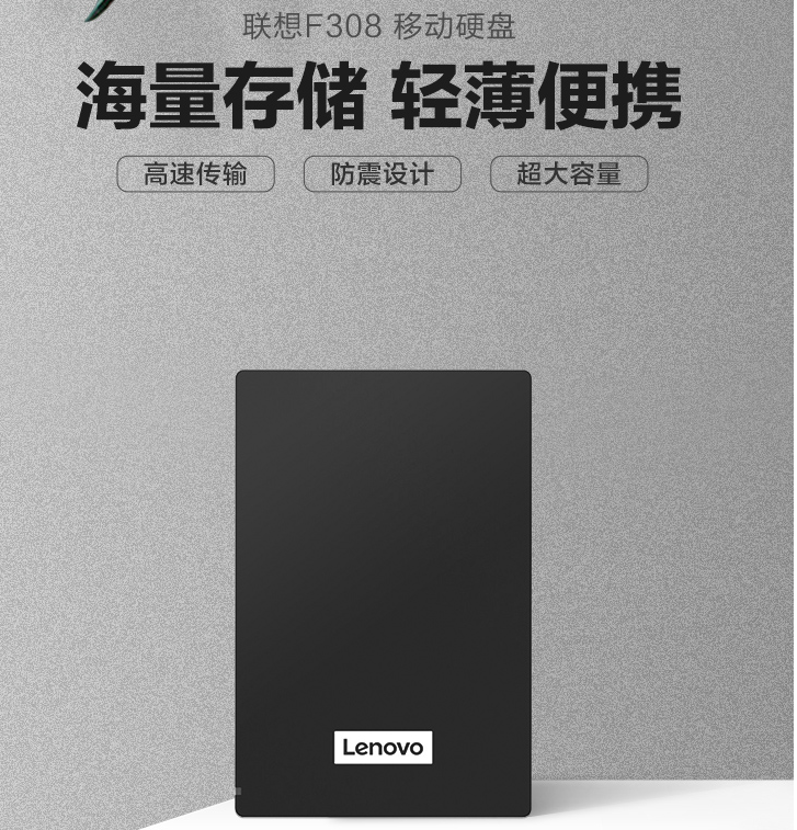 联想(Lenovo) F308)4TB 移动硬盘F308经典 USB3.0 2.5英寸 商务黑 高速传输移动硬盘