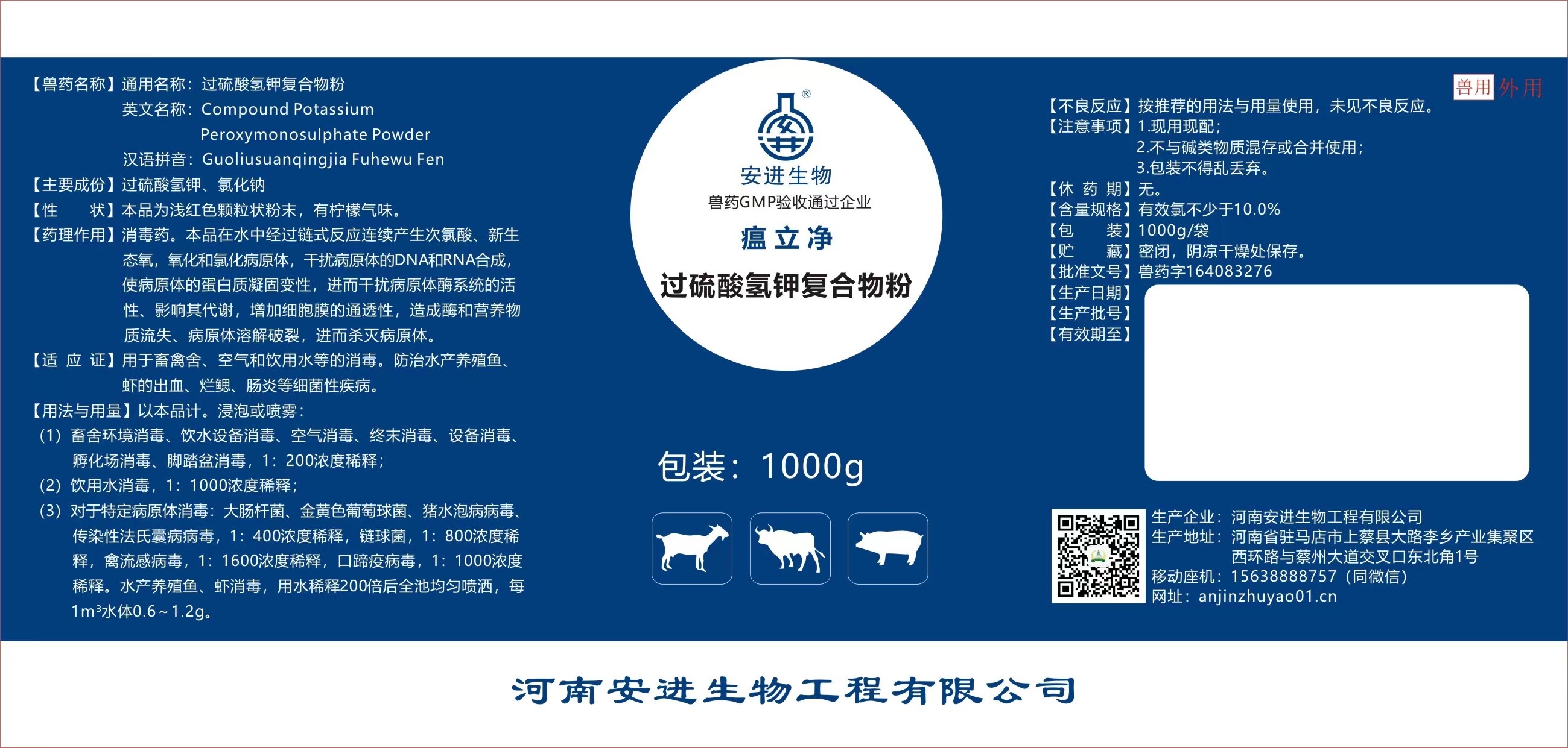 安进 ANJIN-109过硫酸氢钾复合物粉1000g/瓶