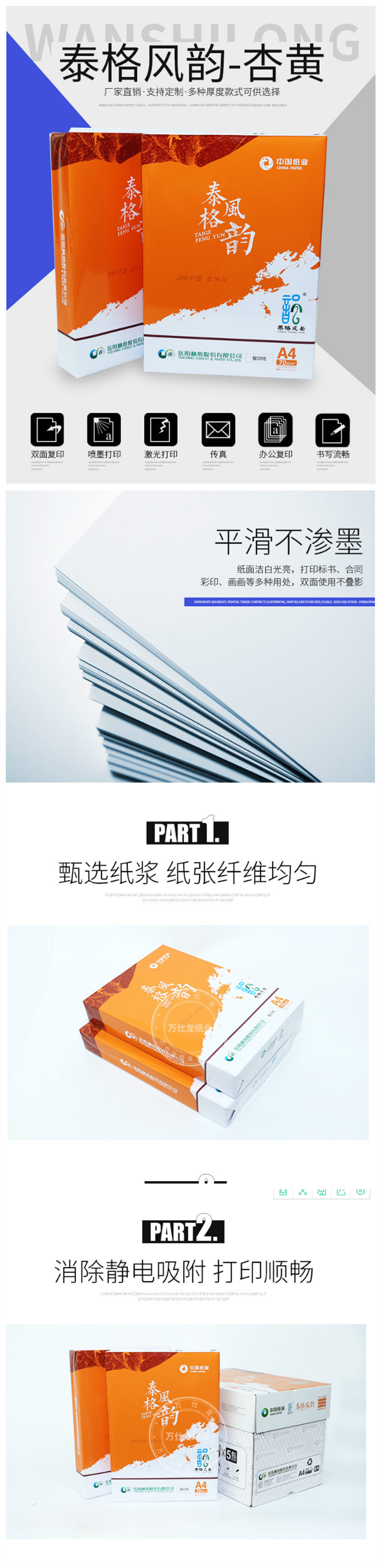 泰格风韵 A4复印纸 70g 500张/包 8包/箱 整箱4000张