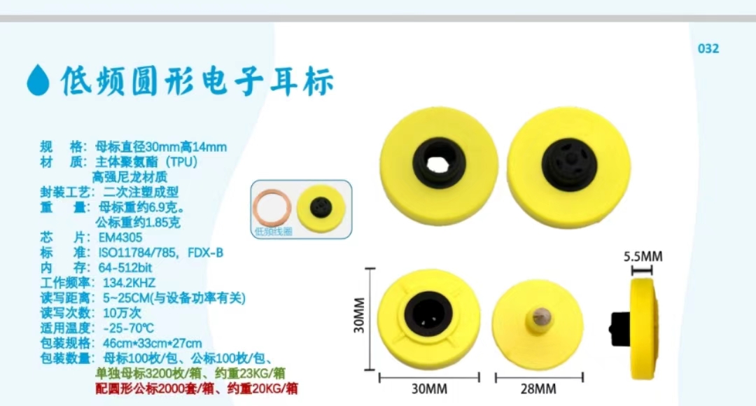 标识/展示 ZBL199定制低频圆形电子耳标 30mm*14mm