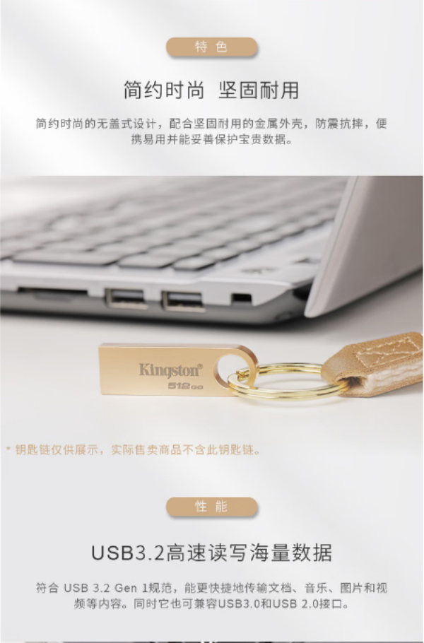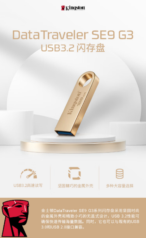 金士顿(Kingston) 128G USB3.2 Gen 1 U盘 DTSE9G3 大容量金属U盘