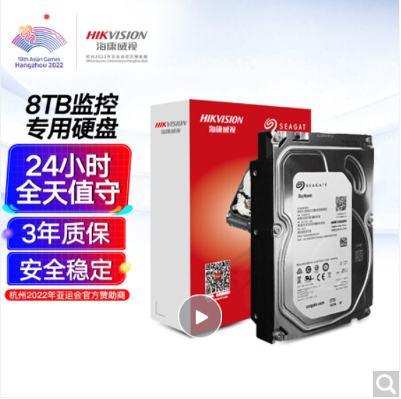 海康威视(HIKVISION) 监控硬盘 紫盘8TB 监控设备录像机专用监控硬盘