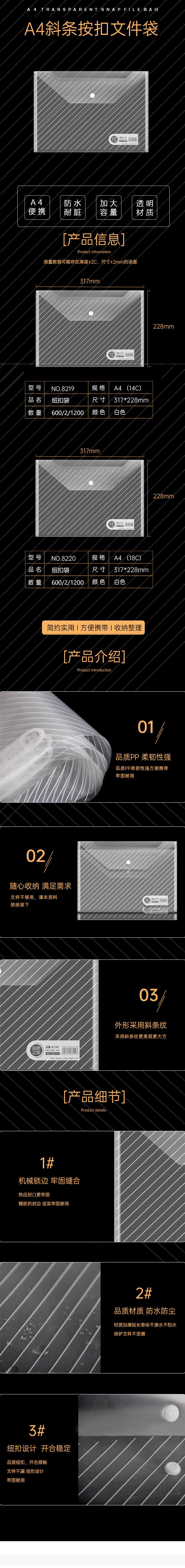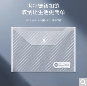 考尔德 A4透明文件袋 资料袋 文件收纳袋 纽扣袋 塑料防水 (8220)A4-18C