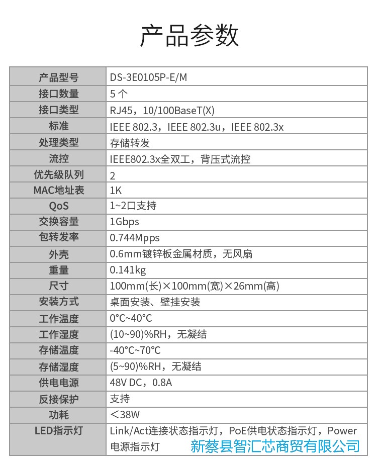 海康威视(HIKVISION) DS-3E0105SP-E 5口百兆非网管型POE交换机 4口POE 35W