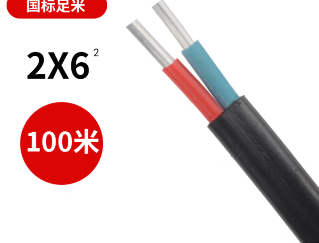 豫云鑫 国标2芯电缆线铝芯家用户外电线2.5 4 6 10 16 25平方铝线护套线 国标2芯6平方(100米)