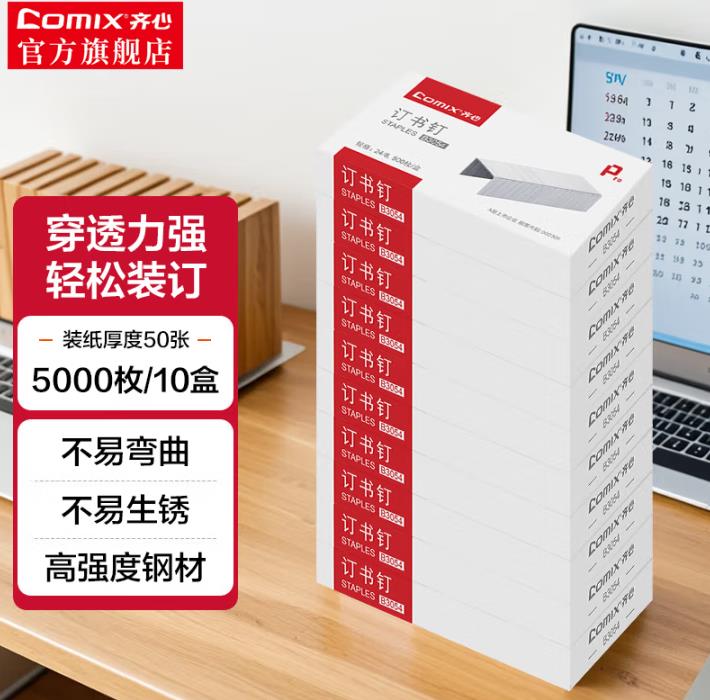 齐心(COMIX) 24/8加厚订书钉/订书针 可订40页 办公用品 B3054 【24/8】订书针 10盒5000枚