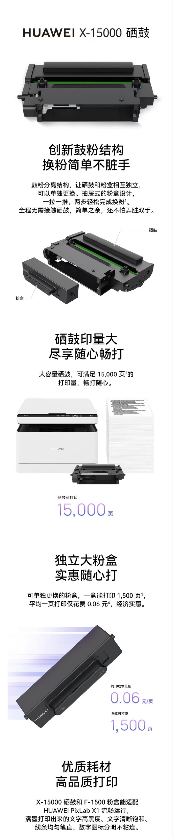 华为(HUAWEI) X-15000 硒鼓 适用于华为激光多功能打印机/15000页寿命/鼓粉分离/原装品质 黑色