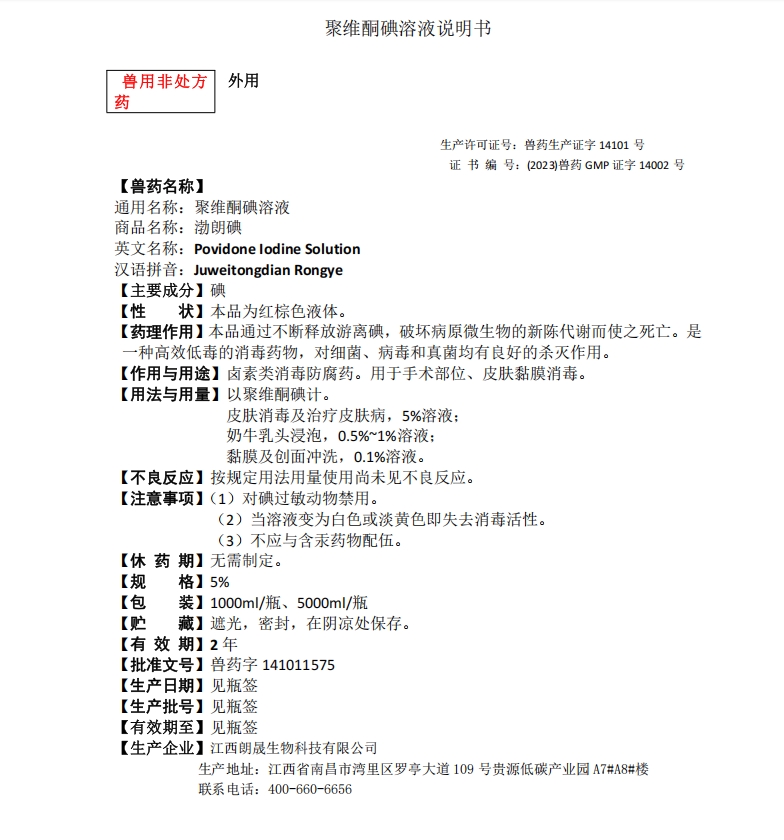 渤朗 BL069 5%聚维酮碘溶液 5000ML/桶