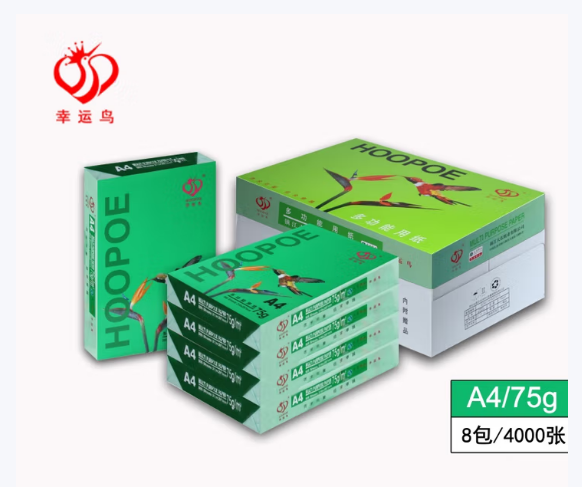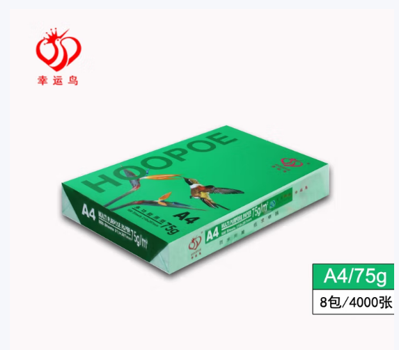 幸运鸟 HOOPOE 打印纸75g 500张*8包复印纸 双面加厚草稿纸 打印书写绘画