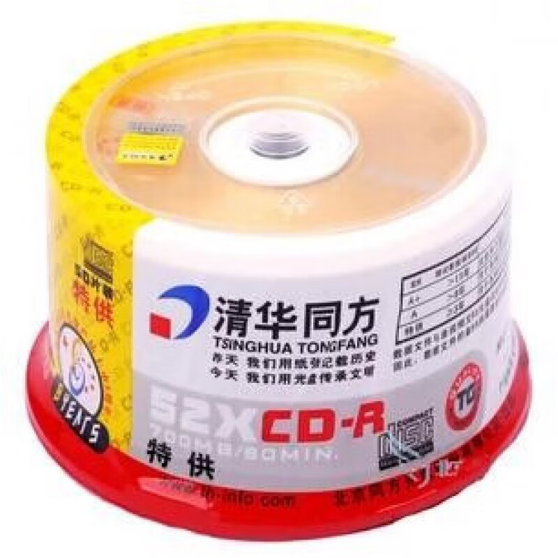 清华同方(THTF) CD-R光盘700MB 空白刻录盘 50片装/桶 同方CD 一盒