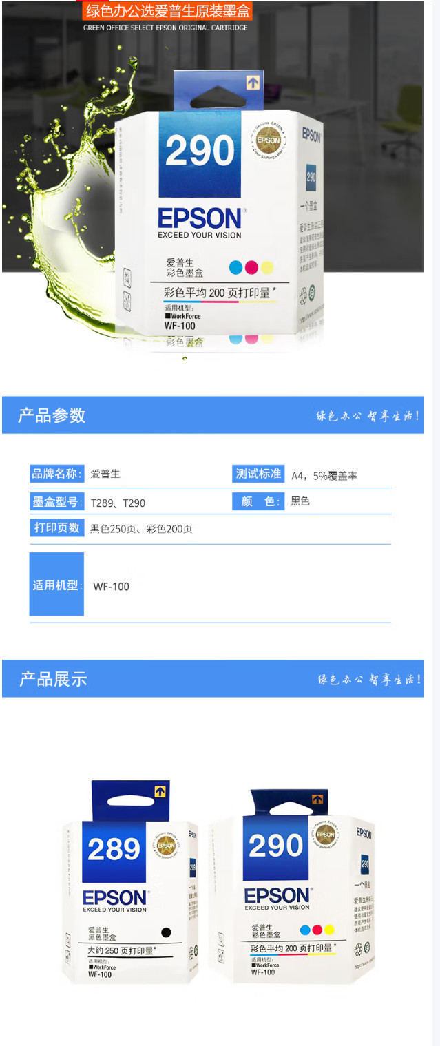 爱普生(EPSON) T290墨盒彩色(适用WF-110/WF-100机型)