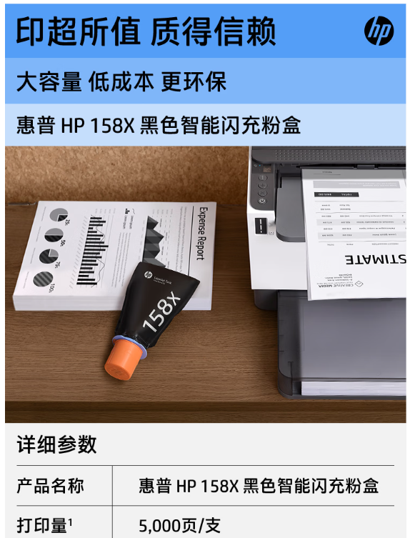 惠普(HP) W1580X 粉盒 适用Tank1005/1020/2506/2606系列打印机 158A 158X黑色闪充碳粉盒