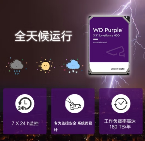 海康威视(HIKVISION) 西部数据机械硬盘安防视频录像机监控专用紫盘5400转64MB SATA6Gb/秒