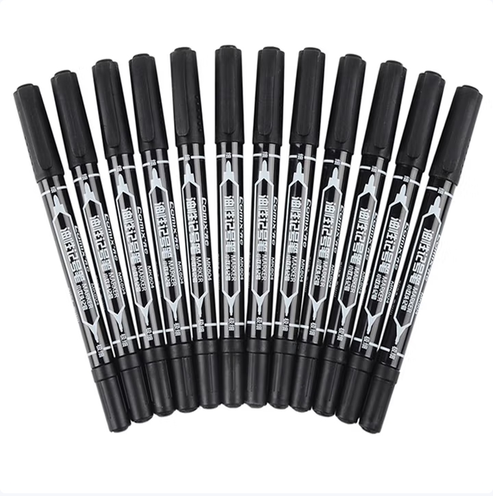 齐心(COMIX) 速干防水小双头油性记号笔 素描勾线笔 办公文具 1盒装价 MK804 黑色 12支