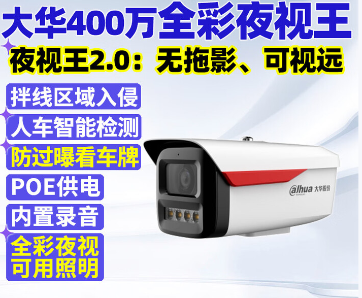 • 商品名称:浙江大华 HFW1433M3-A-IL4 400万摄像头POE高清夜视监控4灯全彩夜视王(夜晚如白天)POE录音人形检测HFW1433M3-A-IL4