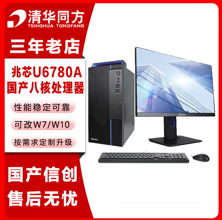 清华同方(THTF) 信创 超翔TZ830 国产化台式机电脑 兆芯ZX-EKX-U6780A 8G 512G 集显 23.8