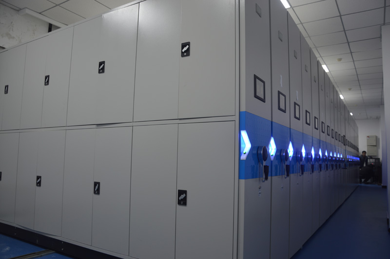密集架主要由导轨、底盘、传动机构和架体(包括立柱、挂板、搁板、顶板、门板、侧护板、防鼠板、防尘板)等零(部)件组成。架顶设有防尘装置、列与列之间装有特种抗老化橡塑磁性密封条,形成两列间的全封闭,门面列和中间移动列分别装有锁具和制动装置,每组密集架闭合后可用总锁锁住,形成一个封闭的整体,底部设有防鼠、防倾倒装置,整个架体具有良好的防尘、防鼠、防潮、防火阻燃、防盗和保密功能。