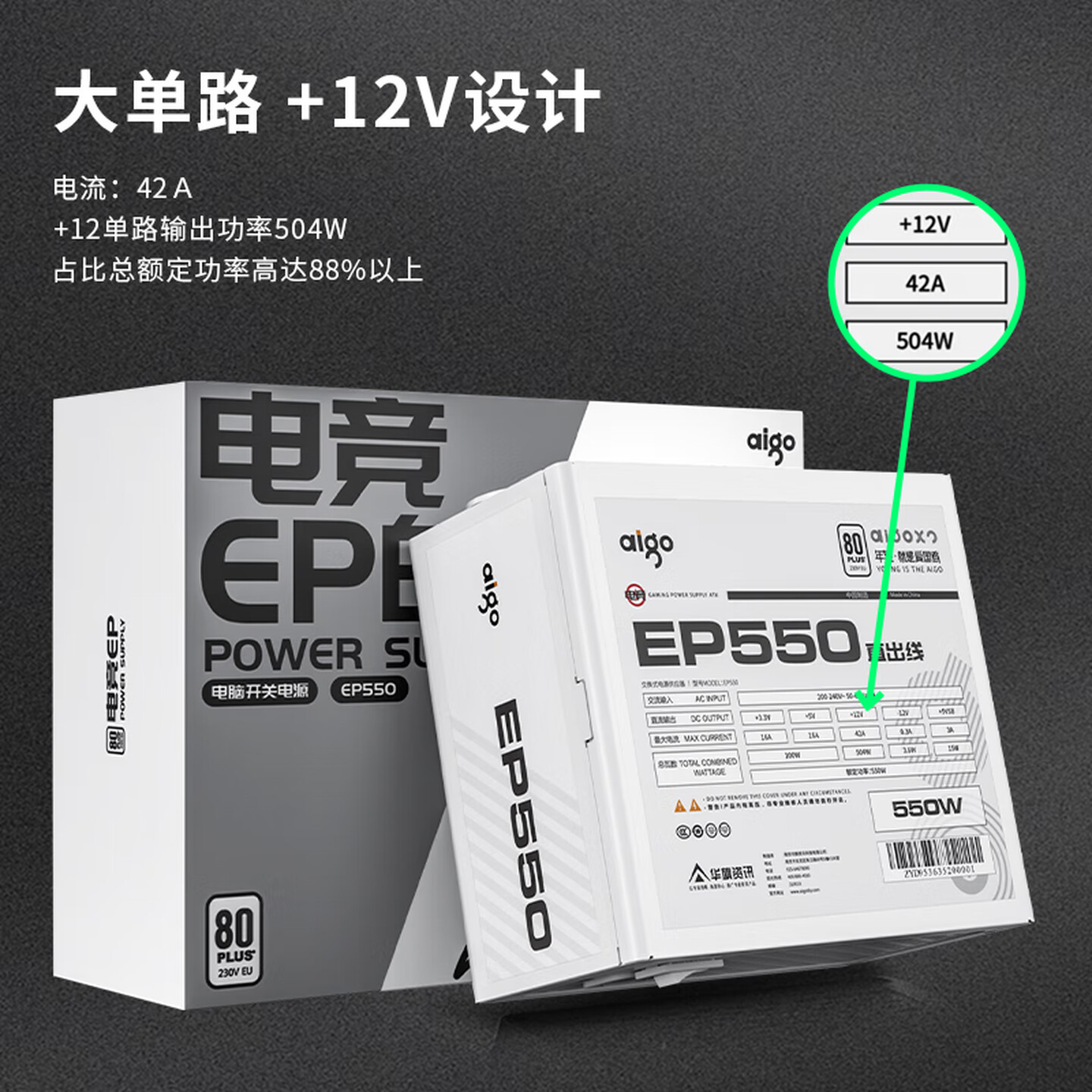 • 商品名称:爱国者(aigo) EP550 额定550W EP550 黑色 电脑主机电源
