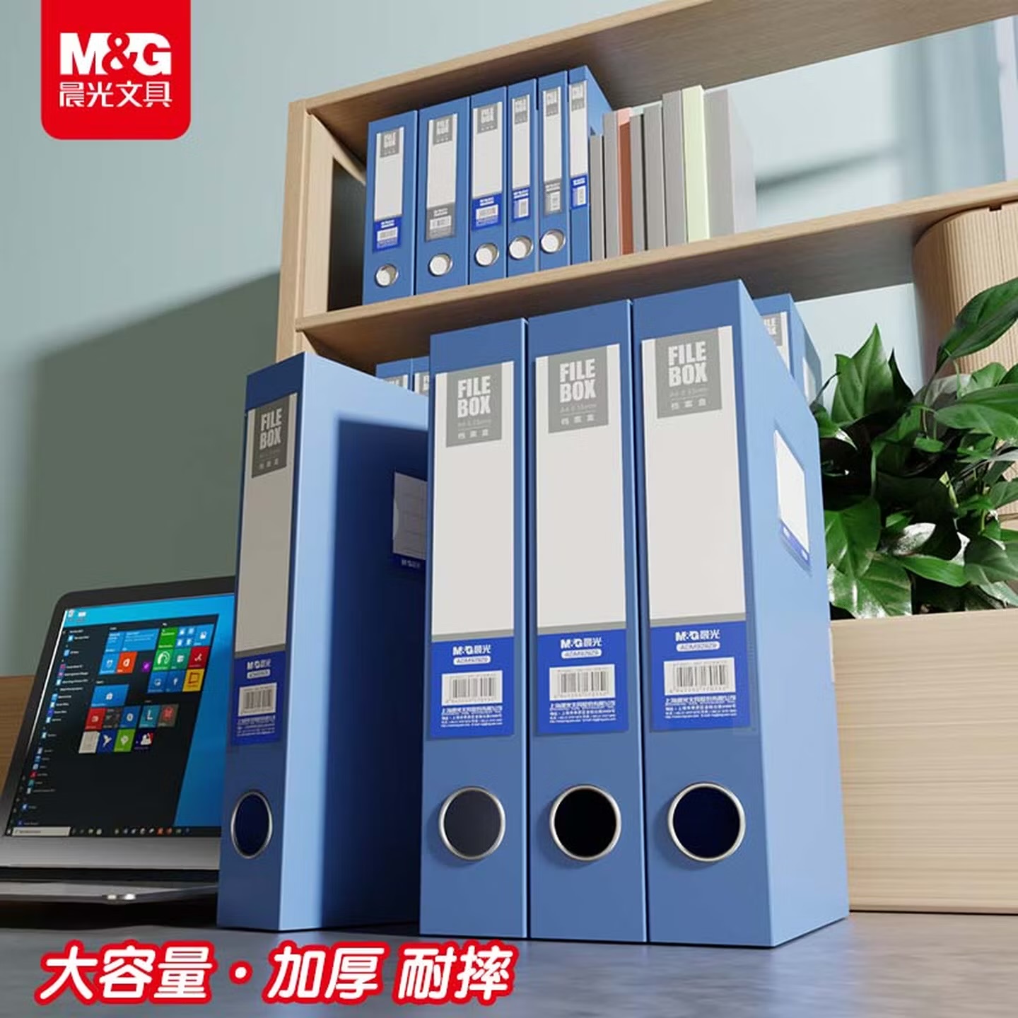 晨光(MG) 文具10只A4/75mm蓝色粘扣档案盒 办公塑料文件盒 财务凭证收纳资料盒 ADM929AB