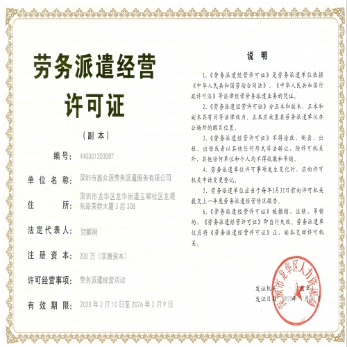 深圳市鑫众源劳务派遣服务有限公司将进一步强化服务团队建设,继续发扬改革创新、科学发展的精神,牢牢把握发展机遇,以人力资源外包服务为核心,向相关领域适度延伸,建立一个多功能、专业化、高水准的人力资源服务综合体系。