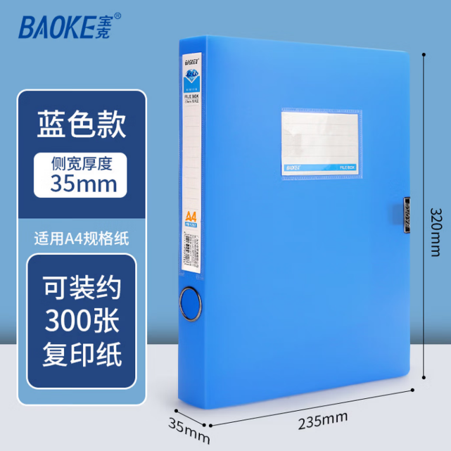 宝克 FB1252A4塑料档案盒 加厚文件盒资料盒 财务凭证收纳盒 办公用品 蓝色【背宽35mm】