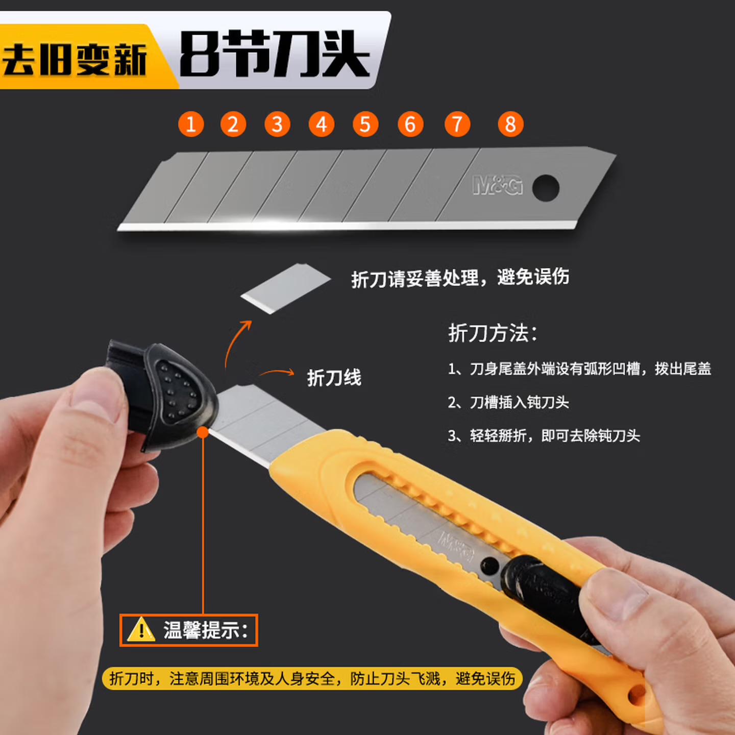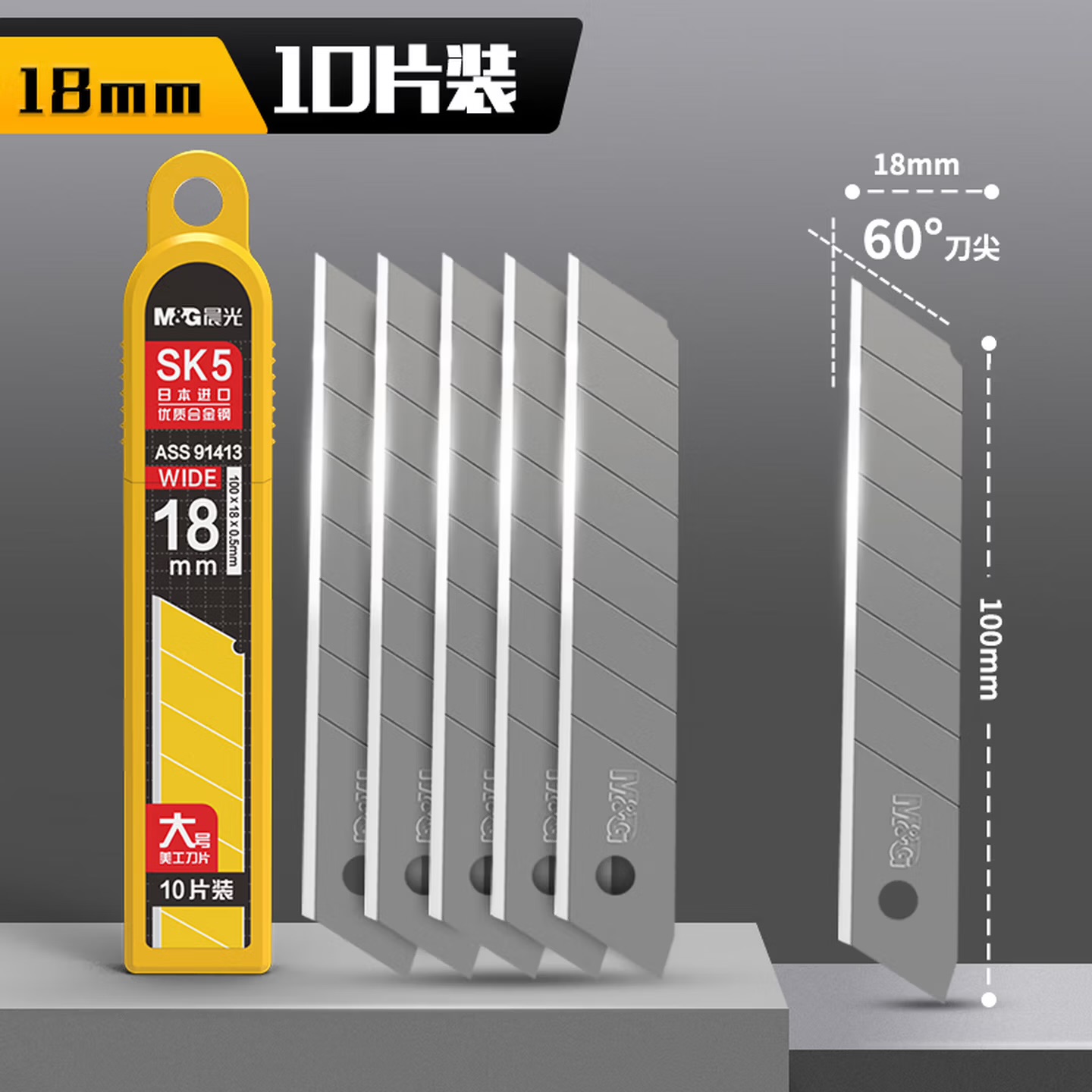 晨光(MG) 文具18mm大号美工刀片 8刀头SK5合金钢刀片 办公用品 10片/盒 5盒装ASS91413