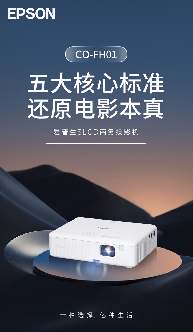 爱普生(EPSON) CO-FH01 投影仪 投影机【3000流明 1080P】标配+吊架+安装+1.5米HDMI线