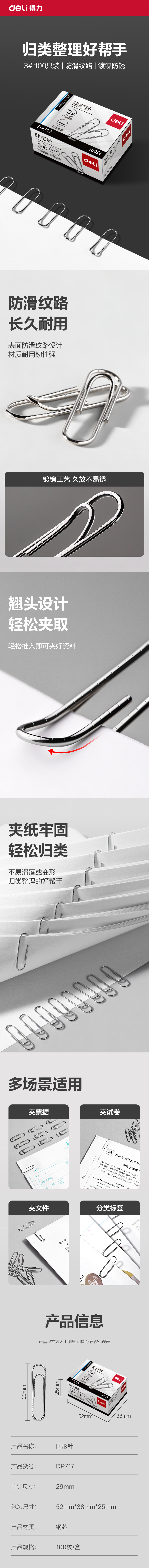 得力(deli) 回形针 DP717 3号29mm 100枚/盒 10盒/组 银 1组