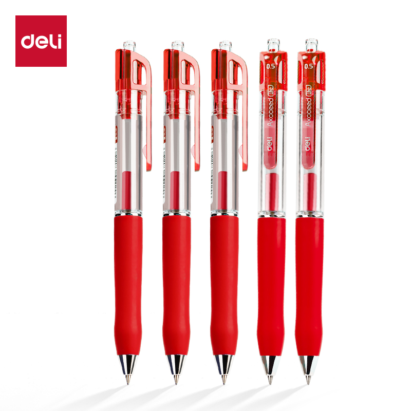 得力(deli) 中性笔 S12 0.5mm 子弹头 12支/盒 红 1盒