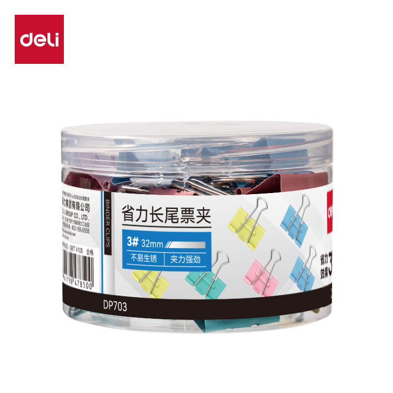 得力(deli) 省力长尾票夹 DP703 3号32mm 24枚/筒 混 1筒