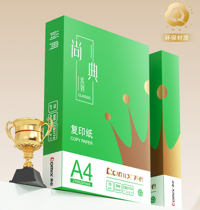 齐心(COMIX) 复印纸A4 绿尚典系列A4打印纸 70g 500张*8包 双面丝滑畅打a4复印纸