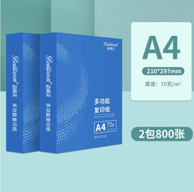 百利文 A4多功能双面复印纸打印纸办公资料复印纸A4白纸草稿纸书写绘画纸张 A4/70g-2包(800张)-BH6071SE