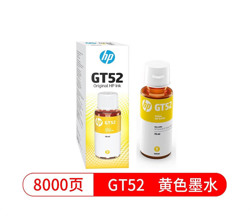 惠普(HP) GT52墨水(M0H56AA)黄色/8000页适用Tank518/519/538/583/585/588/589/675/678/755/758