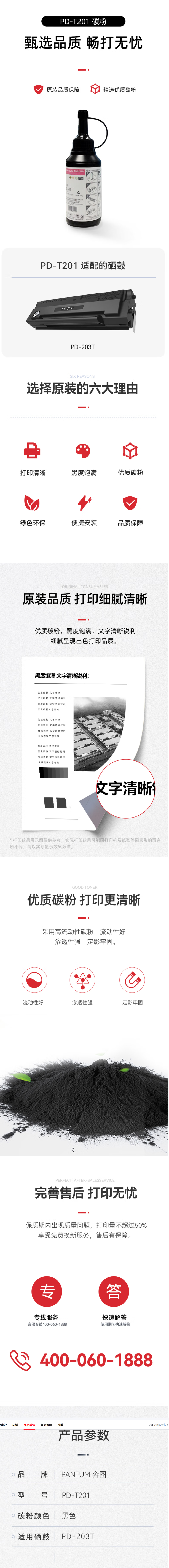 奔图(PANTUM) PD-T201原装碳粉 适用PD-203T硒鼓粉盒墨粉 适用P2200W、M6200W打印机