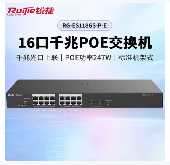 锐捷(RUIJIE) RG-ES118GS-P-E 16口千兆POE交换机(千兆光口上联 POE功率247W 标准机架式)