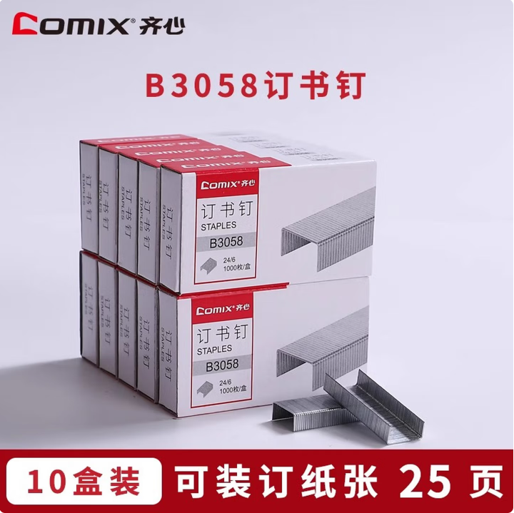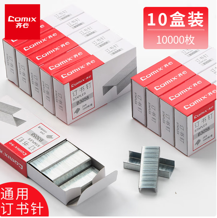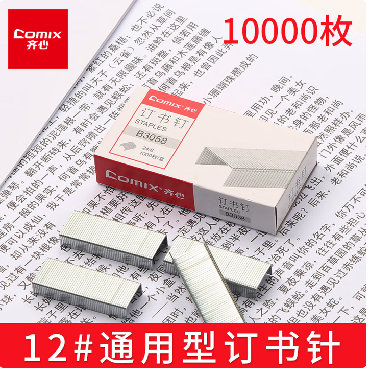 齐心(COMIX) B3058【10盒】12号订书针24/6统一通用型12标准订书钉办公文具财务装订用品订书机钉子订书订装订订书 10盒装10000枚