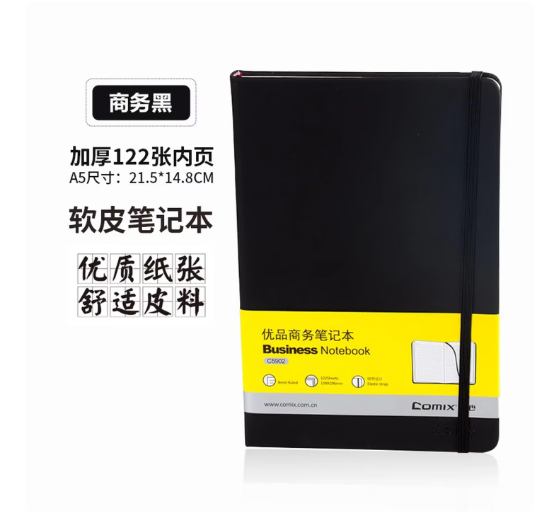 齐心(COMIX) C5902笔记本子a5本可印刷加厚记事本商务皮面工作本办公本子 黑x3 A5