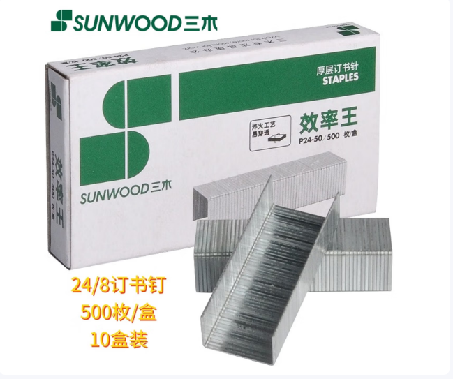 三木(SUNWOOD) 效率王系列 24/8订书钉500枚/盒 10盒装 P24-50