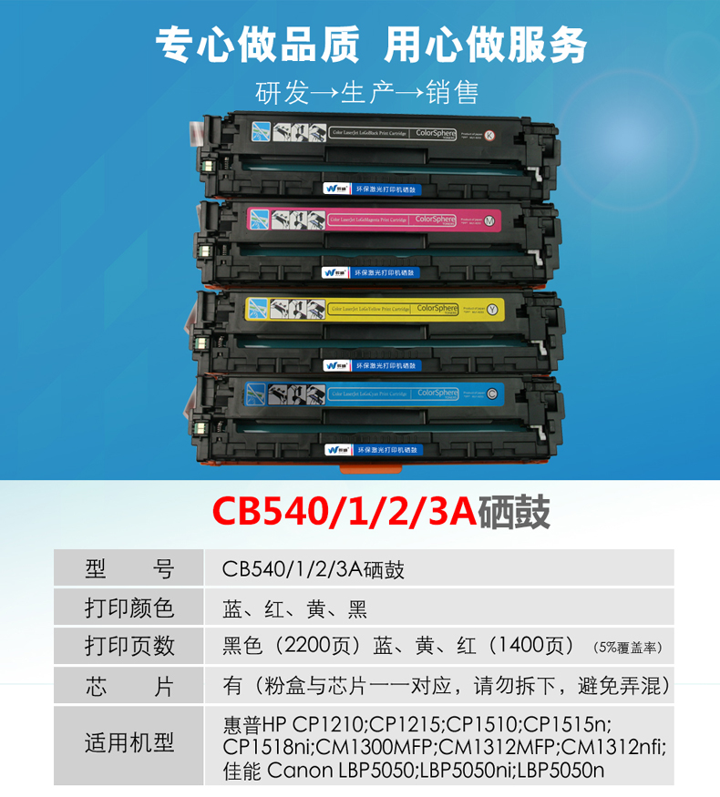 骅威 CB541A 蓝色硒鼓 适用惠普CP1215 1510 1515n 1518ni CM1312 1312nfi 打印机硒鼓