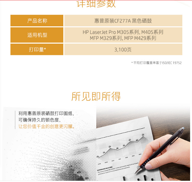 惠普(HP) CF277A 77A 黑色硒鼓(适用于 HP LaserJet Pro M405 系列/MFP M429 系列)