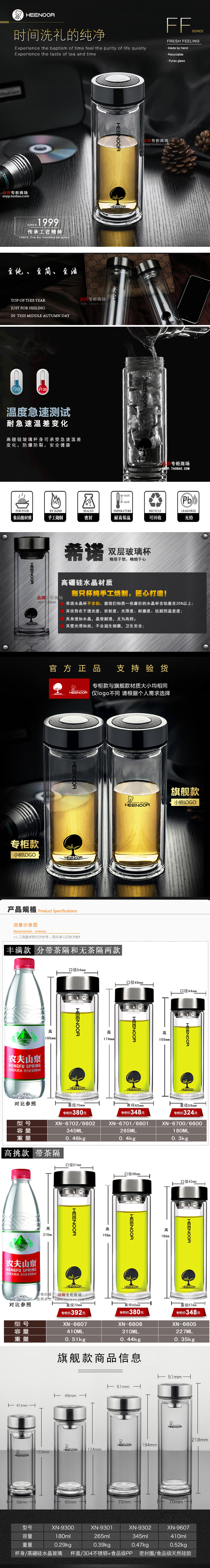 希诺(heenoor) 6701玻璃杯 265ML双层便携透明隔热杯子办公室无铅茶水杯